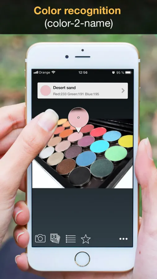 Do you have difficulties with saying what color it is? Take a photo and touch the color you need on the photo, and we will show you its correct name.