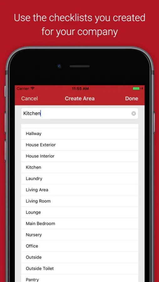 • Add areas on the go, while using the default checklists set up for your company