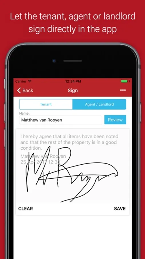 • Let the tenant, agent or landlord sign directly in the app