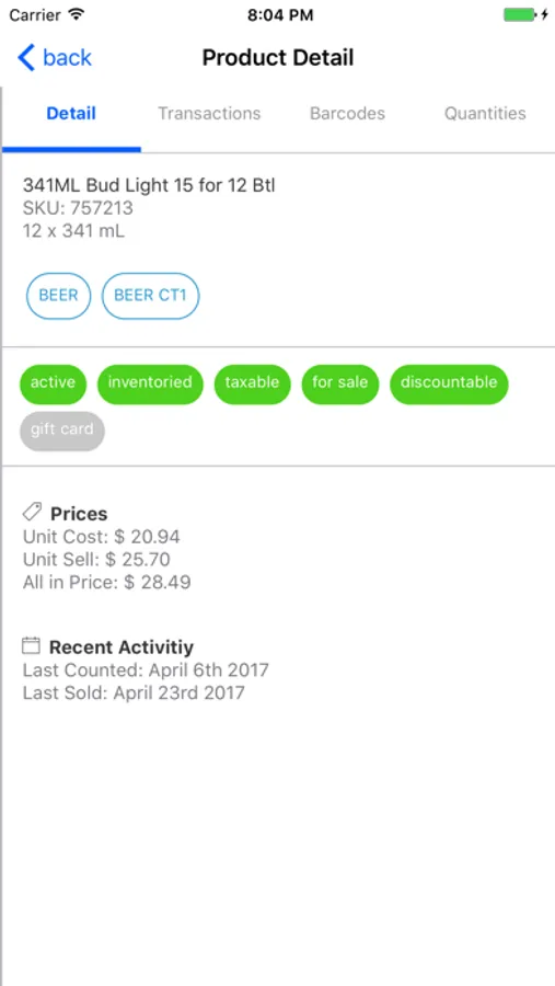 - Product lookup
