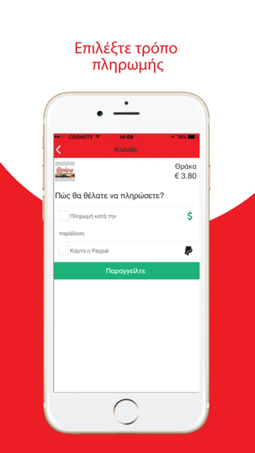 3) Τέλος διάλεξε το τρόπο πληρωμής. Με τον παραδοσιακό τρόπο (μετρητά κατά την παράδοση) ή μέ την χρήση κάρτας (πιστωτικής ή χρεωστικής) μέσω Paypal.