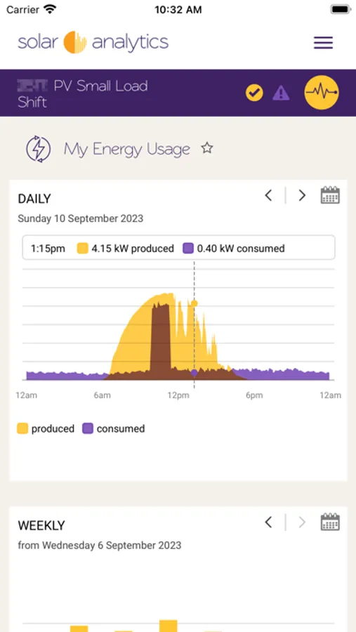 - Daily and aggregated views of your household energy usage so you can self-consume more of your solar energy