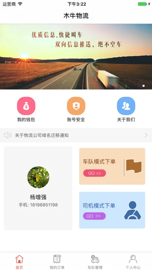 木牛平台是针对公路货运行业推出的物流运输协同管理平台,平台聚集海量实时运力资源信息,通过移动互联网、人工智能、云计算等技术,为物流公司快速匹配合适运力并实现运输全程多方协同可视化管理,保障运输的安全性和时效性,提升运行效率。同时,平台通过订单优化、智能配载技术,让货运司机轻松实现拼车拼货、一程多单、返程找货,多元化的增值服务,帮助司机朋友轻松找货,增加收入。