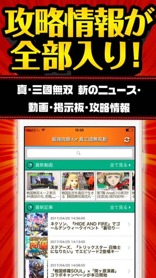 最新ニュース、攻略まとめ、実況動画、掲示板をこのアプリ1つで全て網羅!