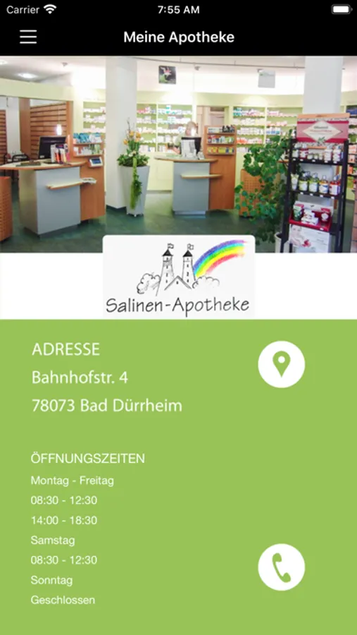 Außerhalb unserer Öffnungszeiten zeigt Ihnen die App immer die nächstgelegene dienstbereite Apotheke an.