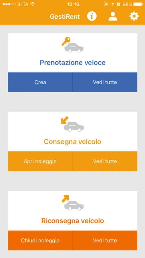 √ Riconsegna Veicolo: dopo aver ricercato il contratto tramite nominativo, mezzo, numero di contratto oppure codice a barre, l’app permette inserimento di data, ora e luogo di riconsegna, operatore che ha ripreso il mezzo con i km e il serbatoio al rientro, possibilità di firma elettronica da far effettuare al cliente, aggiunta foto, possibilità di inviare il contratto in formato PDF per email al cliente.