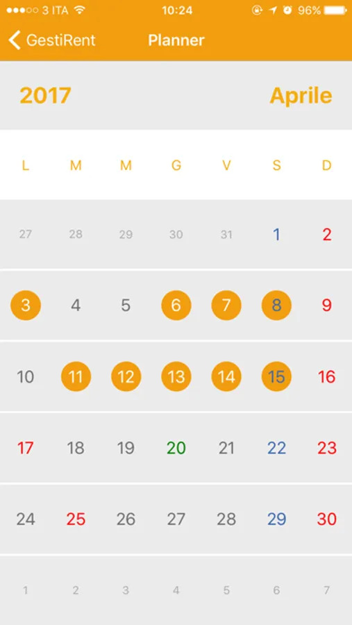 √ Planner: consultazione dei servizi inseriti a sistema tramite un calendario diviso per mese.
