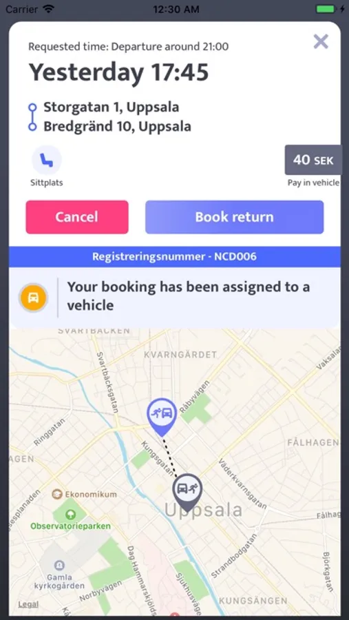 - Bli informerad när fordonet ankommer till din hämtadress