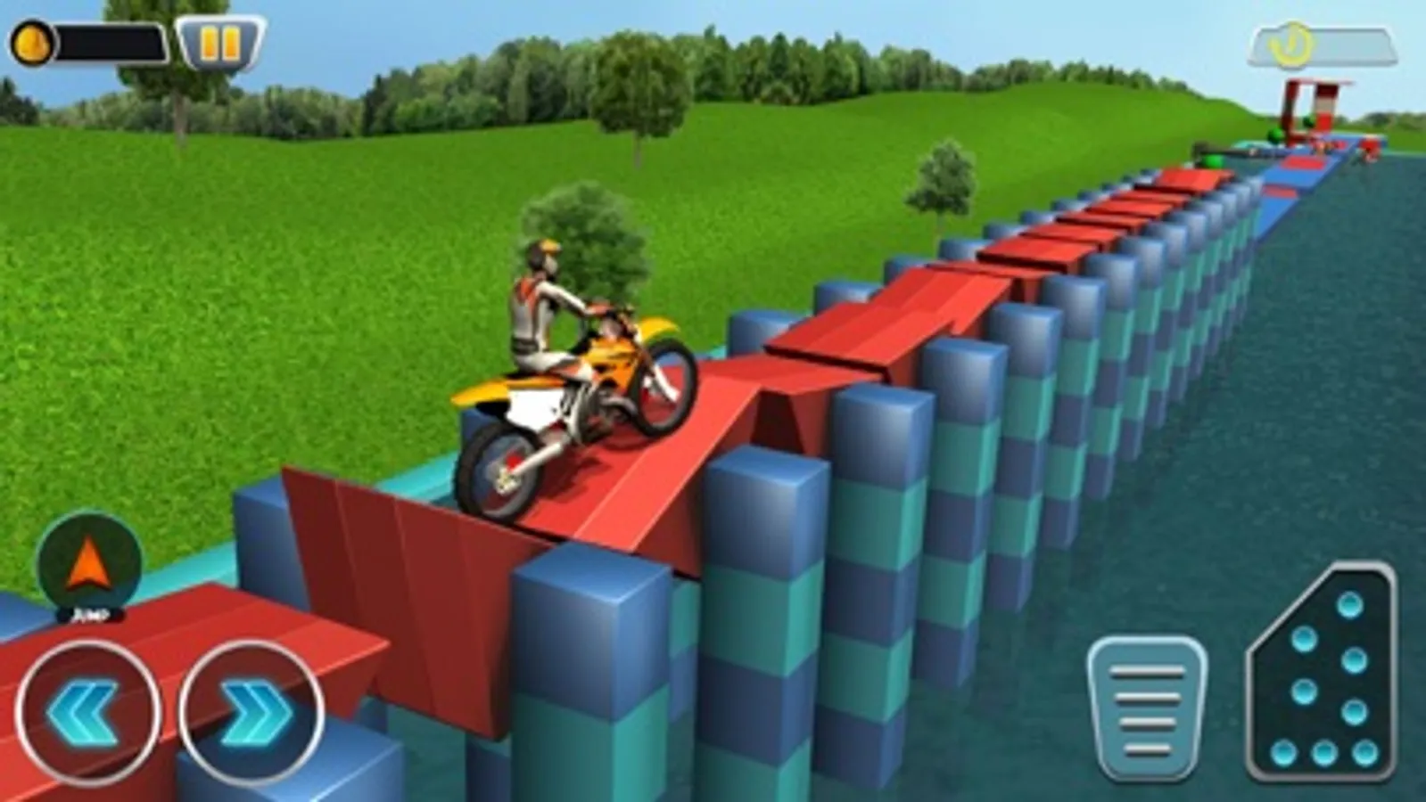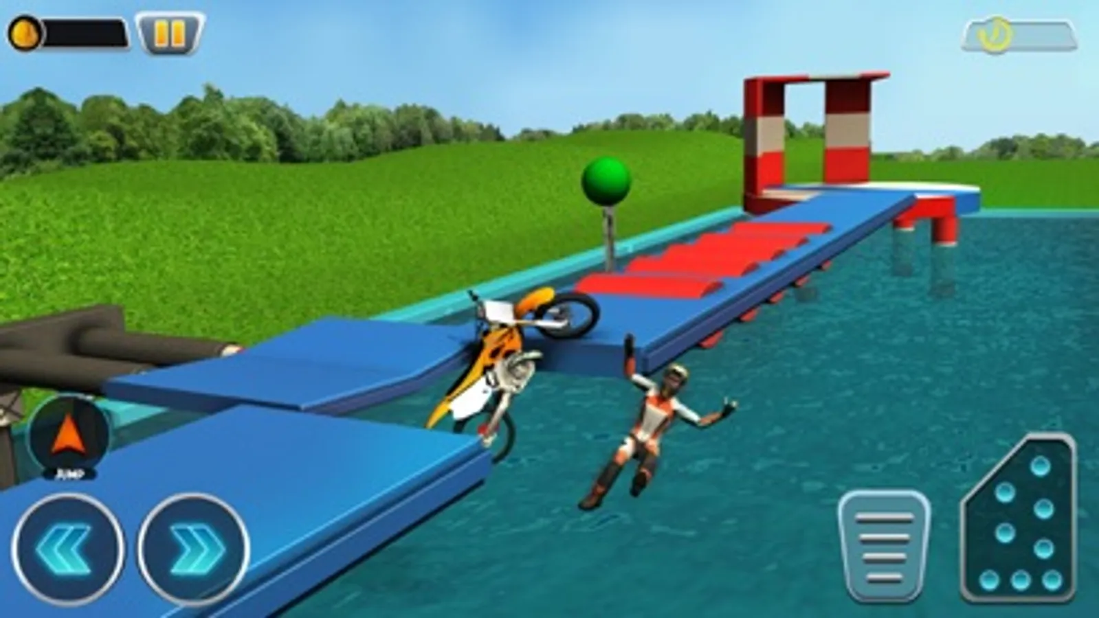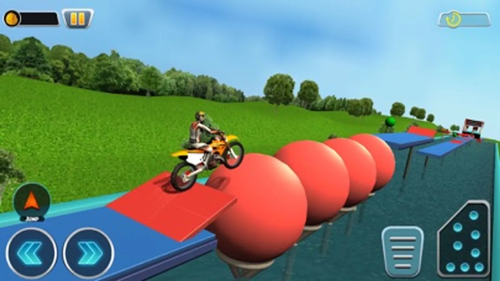 Are you ready to rock this road?! Join the extraordinary stunting game made not for the faint-hearted! Drive through an insane obstacle course, riddled with hurdles and ramps. Prove yourself as a biking champion by defeating tricky levels filled with danger! Avoid spiraling into pools of water, dodge windmills, tackle moving platforms, slide under huge wrecking balls, and more! Wait for the platforms to align. Its moving obstacles are very challenging. Be courageous and cross them. Race your vehicle and feel them rip through the platform, all the while you perform rad stunts midair!