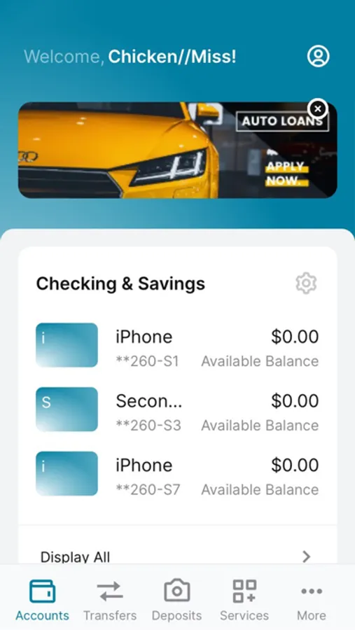· Transfers: account to account, scheduled, pending ACH and check withdrawal transfers are available