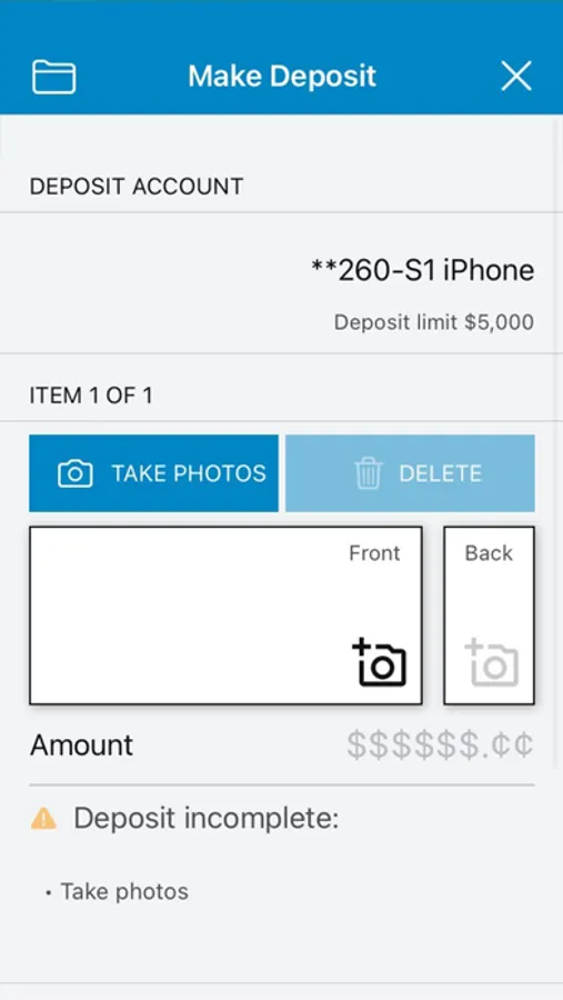 · Remote Deposit Capture: securely deposit checks with your device.