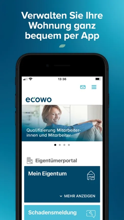 Die ecowo App ist eine innovative und zukunftsorientierte Service- und Kommunikationsplattform und bietet Ihnen viele Services rund um Ihr Wohneigentum. Alle liegenschaftsrelevanten Informationen und Dokumente, stehen für Sie zum Abruf bereit. Durch elektronische Formulare wird die Kommunikation zwischen den beteiligten Personen um ein Vielfaches vereinfacht.
