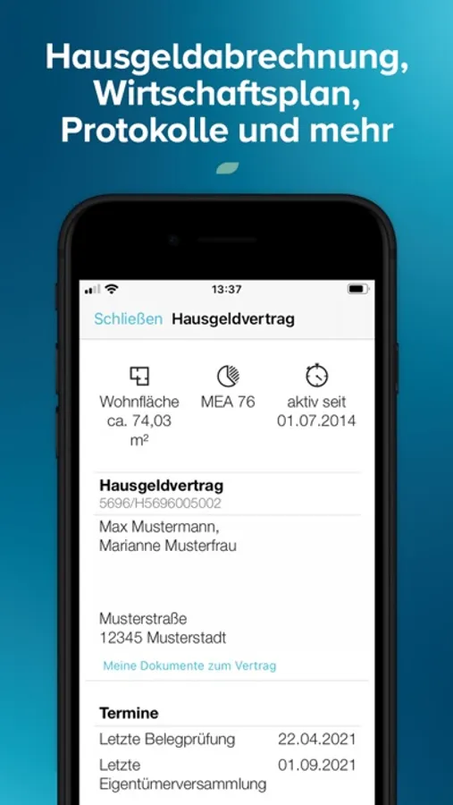 - Rufen Sie Dokumente (Einladung Eigentümerversammlung, Tagesordnung, Hausgeldabrechnung, Wirtschaftsplan, Protokolle, und vieles mehr) bequem ab