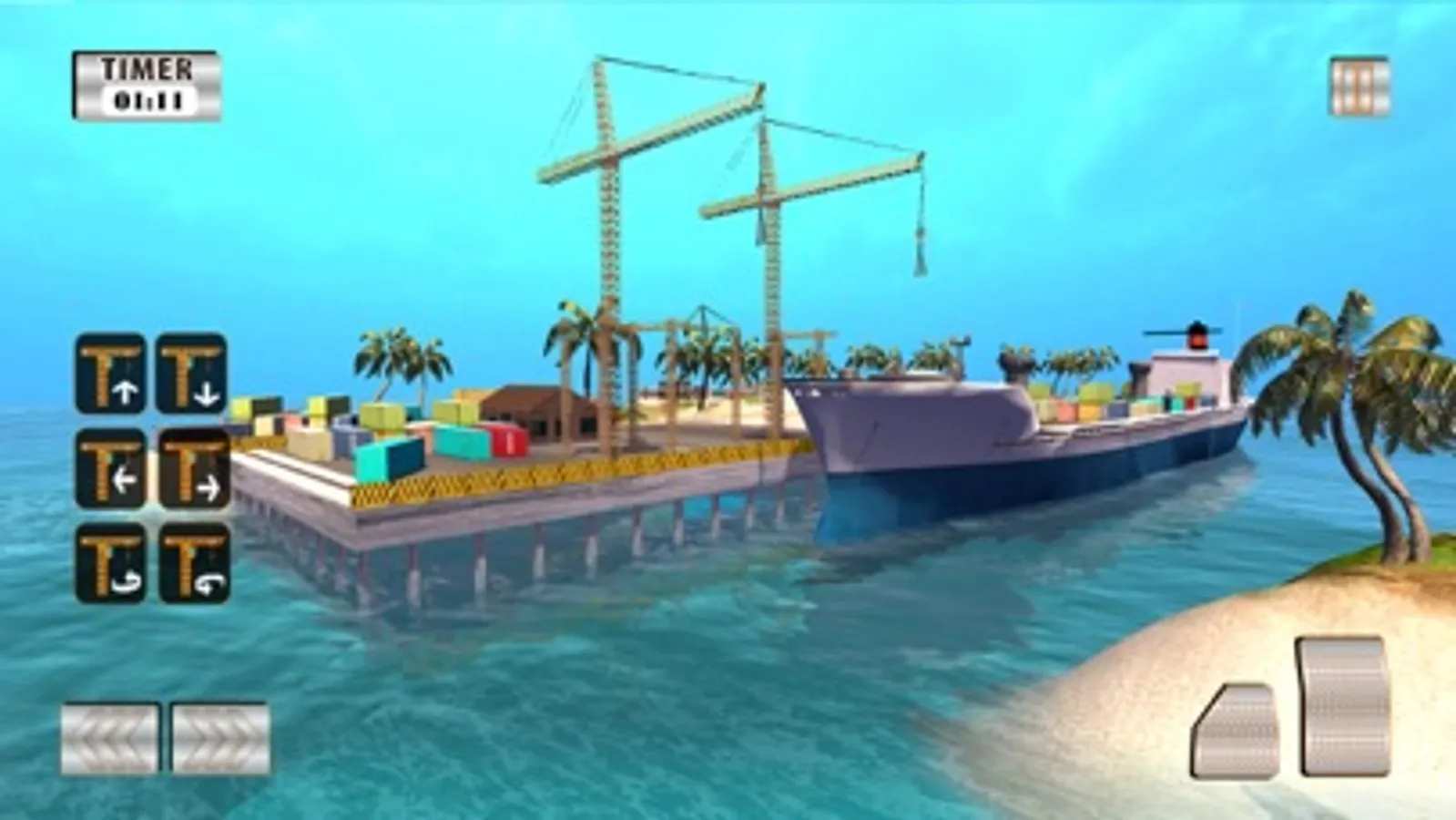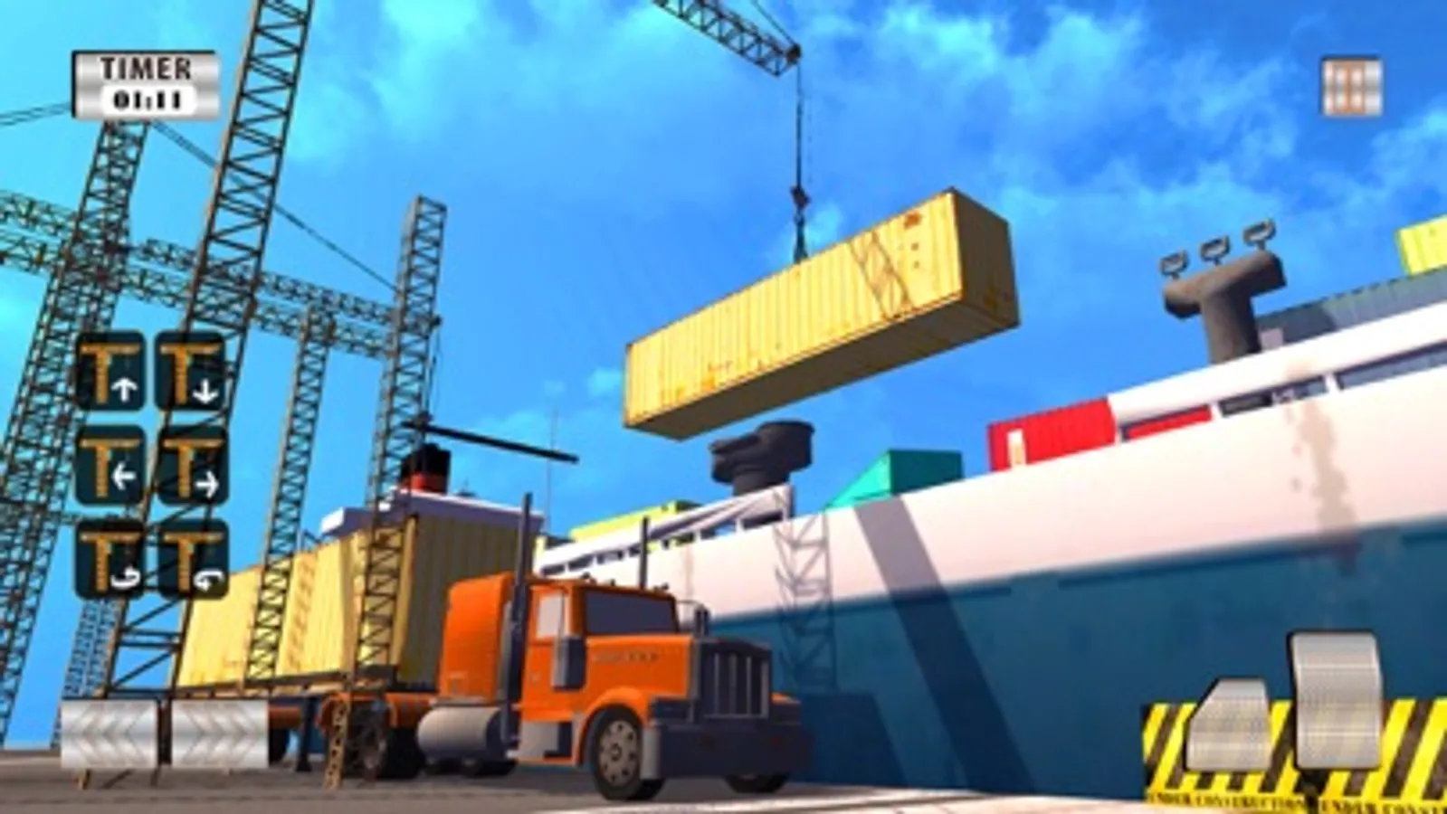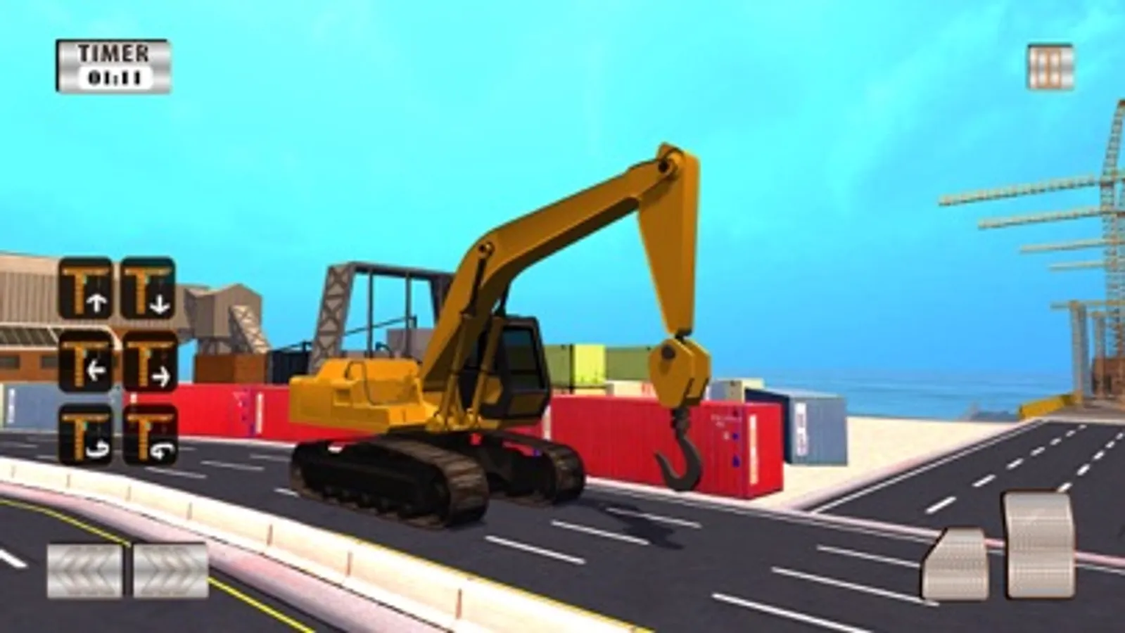 In this Mighty loader & majestic crane driving, within cargo building site on sea port. This harbor crane can help in transporter of materials in cargo ship through manual operation. So Start Transport duty now!