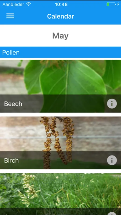- to have an overview (digital calendar) of the critical periods that are usually observed in Belgium for pollens and fungal spores.