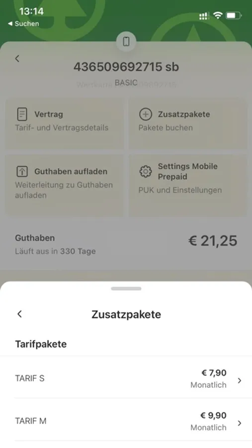 Mit der neuen Mein S-BUDGET MOBILE App haben Sie Ihre Wertkarte jederzeit im Blick! Informieren Sie sich über Ihr verbleibendes Datenvolumen, Freieinheiten, Guthaben und aktuelle Kosten – schnell und übersichtlich.