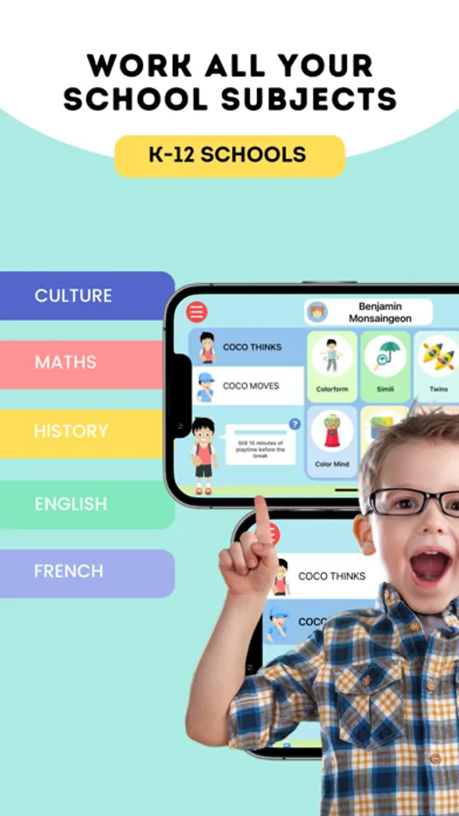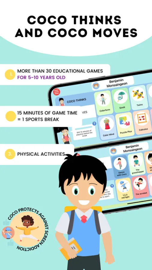 Coco is a learning program with more than 30 games already available: reading, math, memory, reflex and attention, physical activity and so much more for kids from 5 to 10.