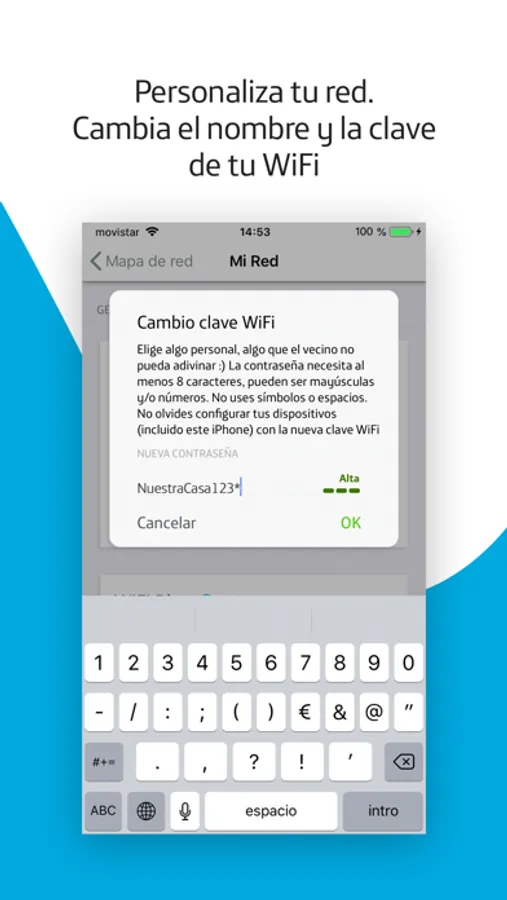 *Personaliza tu red: Elige el nombre que quieras y cambia la contraseña WiFi de manera muy sencilla y segura con la App Movistar Smart WiFi.