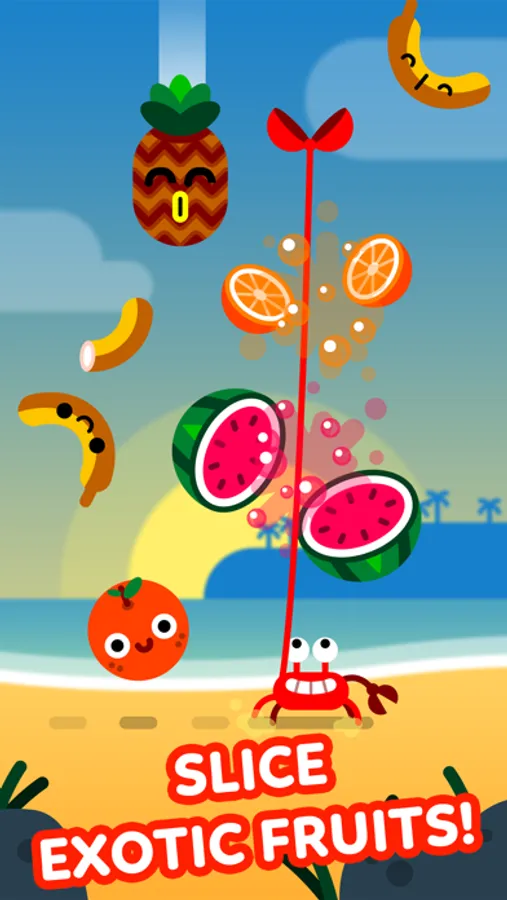 Pick up bonus, collect gold coins, dodge and slice exotic fruits to survive with your beach crab.