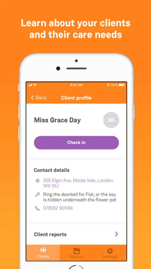 Easily-digestible client information is available on the client’s profile, including address and property access details, as well as the client’s daily routine, interests, and everything you need to deliver high quality care.