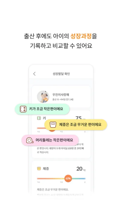 우리 아이가 무럭무럭 잘 성장하고 있는지 확인하고 기록할 수 있어요.