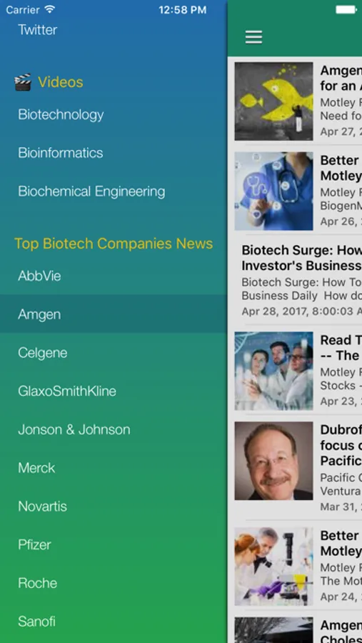 Latest Biotechnology News at your finger tips, with notifications support! Discover what is new in biotech research, including Immunotherapy, Bioinformatics, Genetic Engineering, Biorobotics and more. Stay up-to-date on the biotech market along with biotech stock investment ideas augmented by dedicated news section on top biotech companies such as Johnson & Johnson, Roche, Pfizer plus others. Watch educational and enlightening biotech videos.