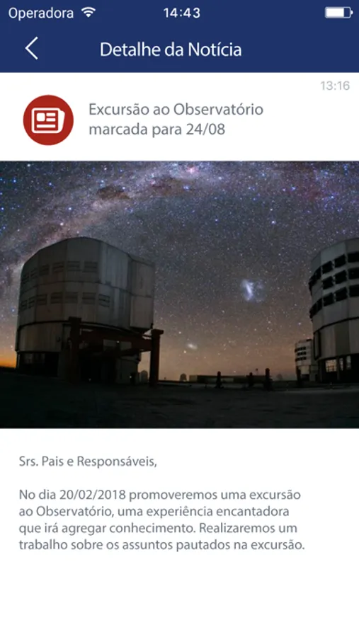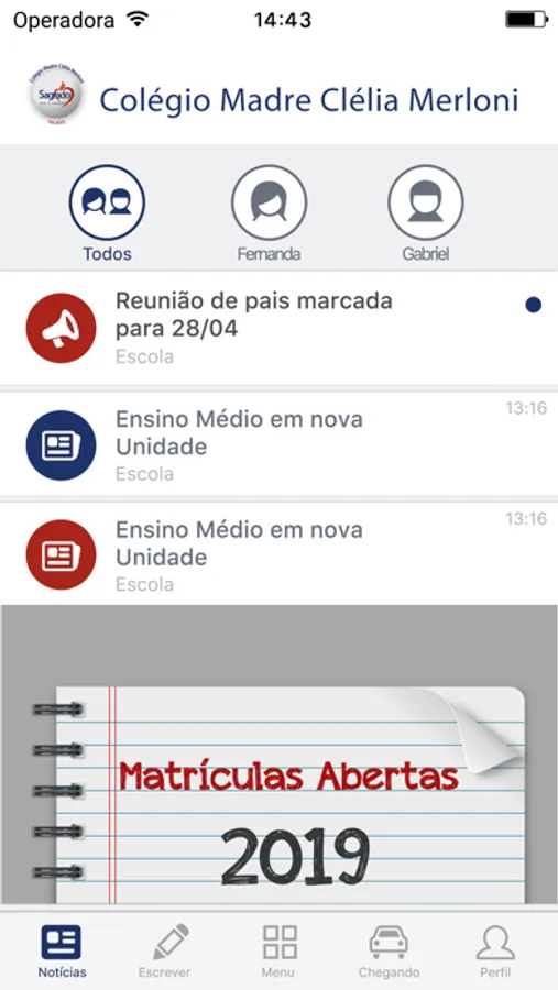 Com este aplicativo, os pais, responsáveis e professores poderão receber as últimas informações da escola, as notícias do dia a dia do seus filhos e o calendário de atividades escolares.