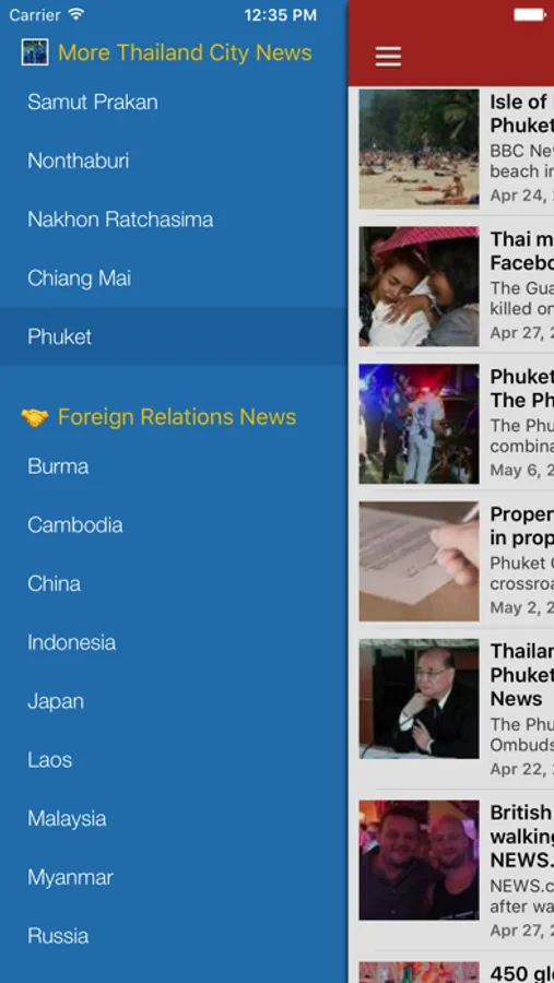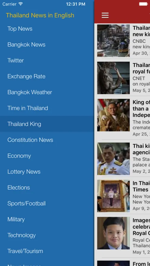 Thailand News in English today & Thai Music Radio at your fingertips, with notifications support! Get the latest breaking Thailand News in including updates on the new King, Constitution news, sports, travel/tourism, its economy plus much more. Individual news sections dedicated to top cities Bangkok, Samut Prakan, Nonthaburi, Nakhon Ratchasima, Chaing Mai & Phuket will keep you informed about local updates there. Stay up-to-date with Thailand's foreign relations with other countries such as China, Japan, US and other nations. Enjoy streaming Thailand radio stations playing Thai music.