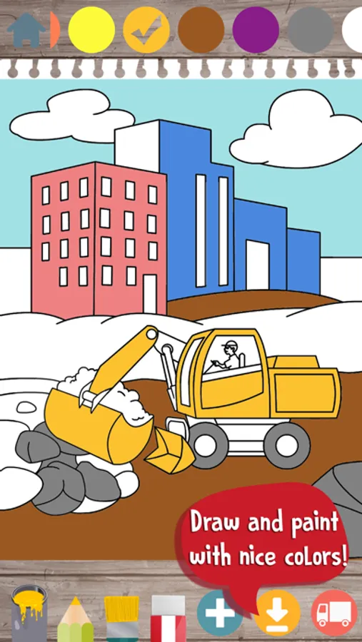 This is an all-in-one construction app for kids by Androbaby! They will learn various structures, construction machines and tools and practice them with various kid games.