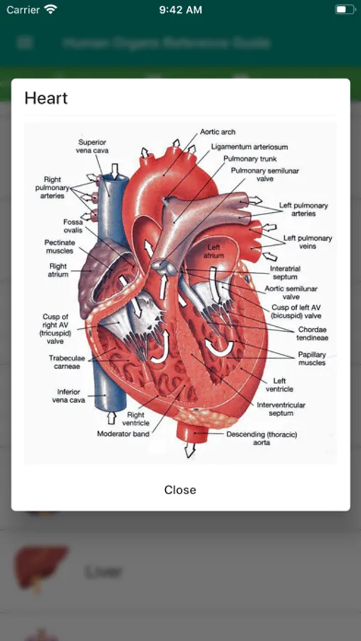 Each article includes various images that when tapped on will show an enlarged version of the image allowing you to take a closer look at the organ.