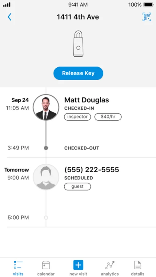 You decide who can access your property. Simply add your guest's phone number, set the permission level and the time of check-in and out.