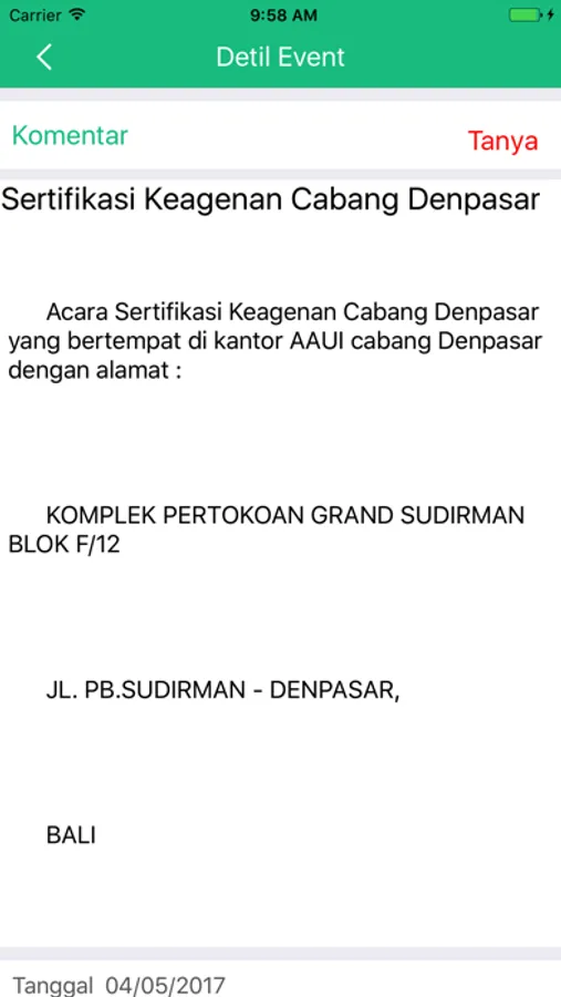 Aplikasi AAUI adalah program resmi dari AAUI untuk menyediakan informasi mengenai perusahaan / agen / produk / event yang berhubungan dengan asuransi umum dengan tujuan meningkatkan kesadaran masyarakat Indonesia atas pentingnya berasuransi sesuai dengan slogan "Mari Berasuransi" yang dimiliki.