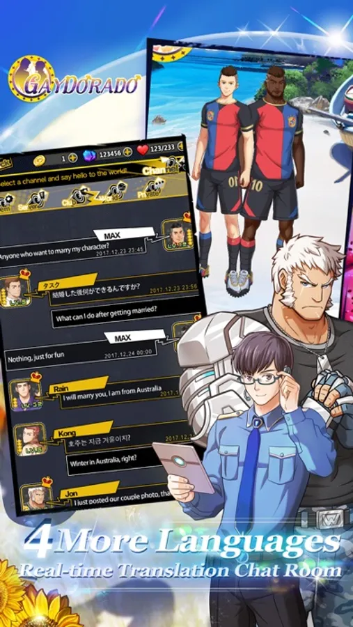 Four new languages available: German, French, Spanish and Portuguese. Chat with players around the world. And no need to worry, the real-time translator will help you understand his language and win his heart!