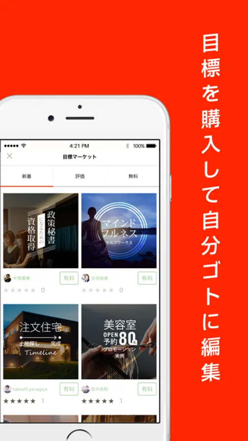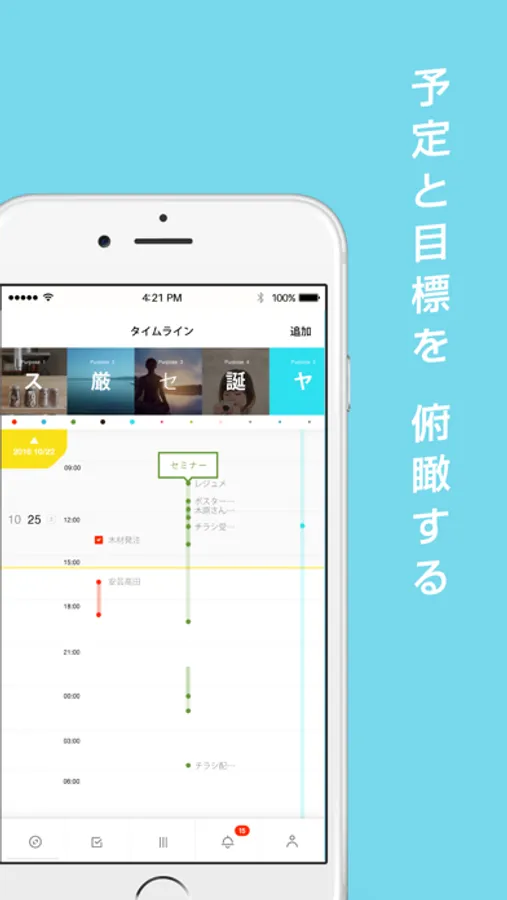 ダウンロードすると目標候補に表示されます。長押しで目標に移動させるとタイムラインに反映されます。※一部コンテンツはDLされた日時から開始となります。モノゴトのテンプレートとして使います。