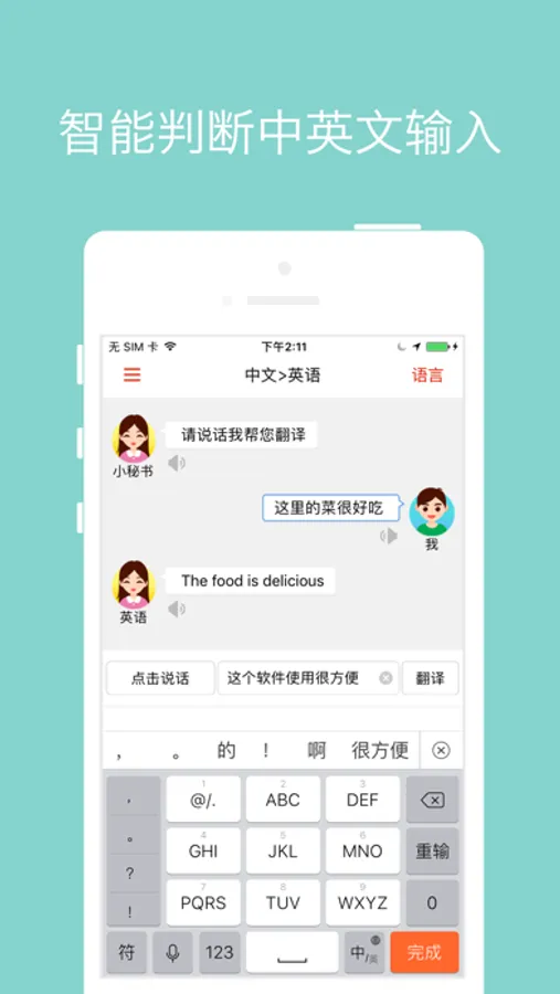 5. 小秘书听得懂普通话,也听得懂英文,粤语,方言,你造吗?全方位支持各种语言的发音转换。