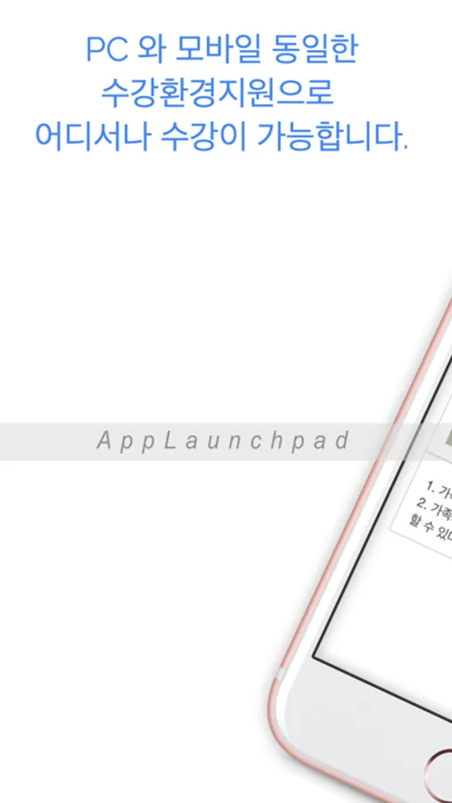 * 강의용 디바이스(휴대폰)에 프로그램을 설치한 후 디바이스(휴대폰)인증과정을 SMS전송을 통해 거친 후 정상적으로 사용이 가능합니다.
