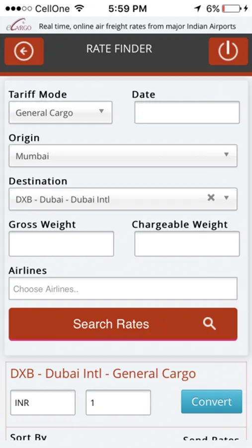 eCargoRates is designed by the best minds in the air cargo industry to provide instant access to real time air freight rates in the most convenient manner. We provide published rates from Mumbai, Delhi, Chennai, Kolkata, Hyderabad, Bangalore, Cochin, Coimbtore, Ahmedabad. eCargoRates is where you no longer have to rely on offline rates and can get instant air freight rates with lightning fast speed.