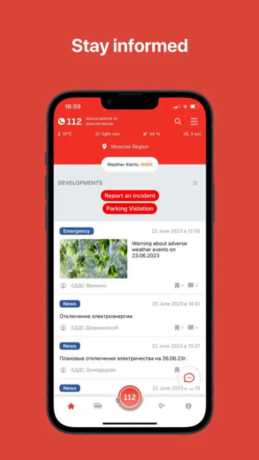 The latest news, information about emergencies, announcements of the Ministry of Emergency Situations and other emergency services of the Moscow Region can be found in the mobile app feed.