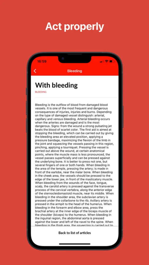 The app's reference guide contains detailed instructions on first aid and emergency response.