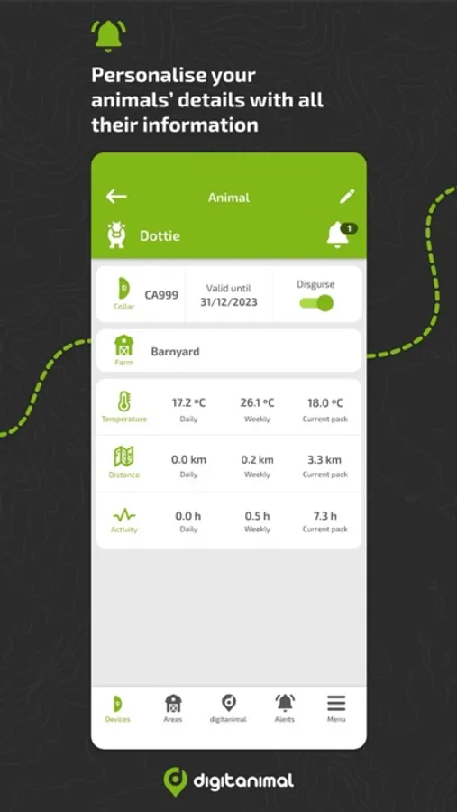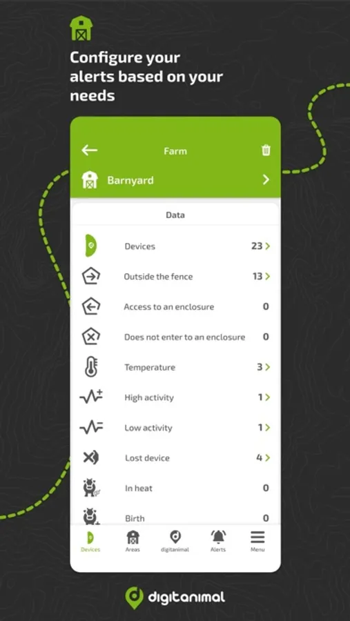 Draw the enclosure where your animals will move inthe digitanimal app and receive alertseach time your animals move out or into this enclosure.