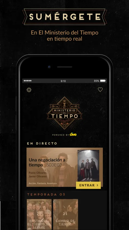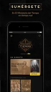 Disfruta en tu móvil de la experiencia El Ministerio del Tiempo - Dive sumergiéndote en tu serie favorita emitida en TVE. Y recuerda que también podrás disfrutar de El Ministerio del Tiempo - Dive cuando estés utilizando la web de RTVE, sincronizando tu capítulo por audio. En El Ministerio del Tiempo -Dive, ofrecemos información adicional en tiempo real de El Ministerio del Tiempo, pero no la podrás reproducir a través de nuestro servicio ya que El Ministerio del Tiempo - Dive no es una aplicación de streaming.
