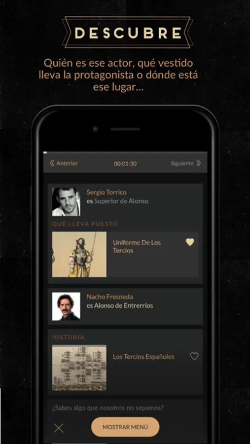 Sea cual sea la pregunta que te hagas cuando estás viendo la serie, El Ministerio del Tiempo - Dive te da la respuesta en tiempo real, porque recopilamos y seleccionamos para ti todo el contenido relacionado con cada escena.