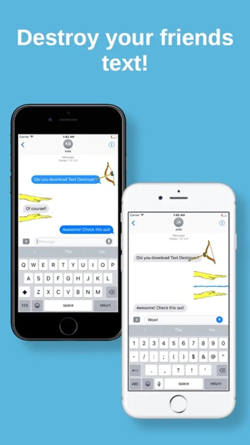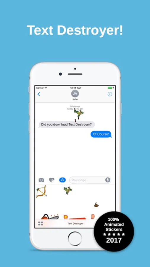 Have you ever wanted to destroy one of your friend's text messages? Well, now you can with Text Destroyer. This sticker app lets you shoot, cut, blow up, and even poop on your friend's text. What are you waiting for?! You need to get this before your friend does!