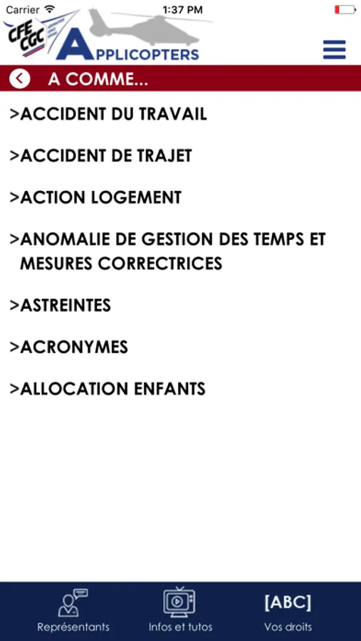 - un ABCDère récapitulant l’ensemble de vos droits applicables au sein d’Airbus Helicopters : outil intuitif et toujours à portée de mains, conçu pour être très simple d’utilisation.