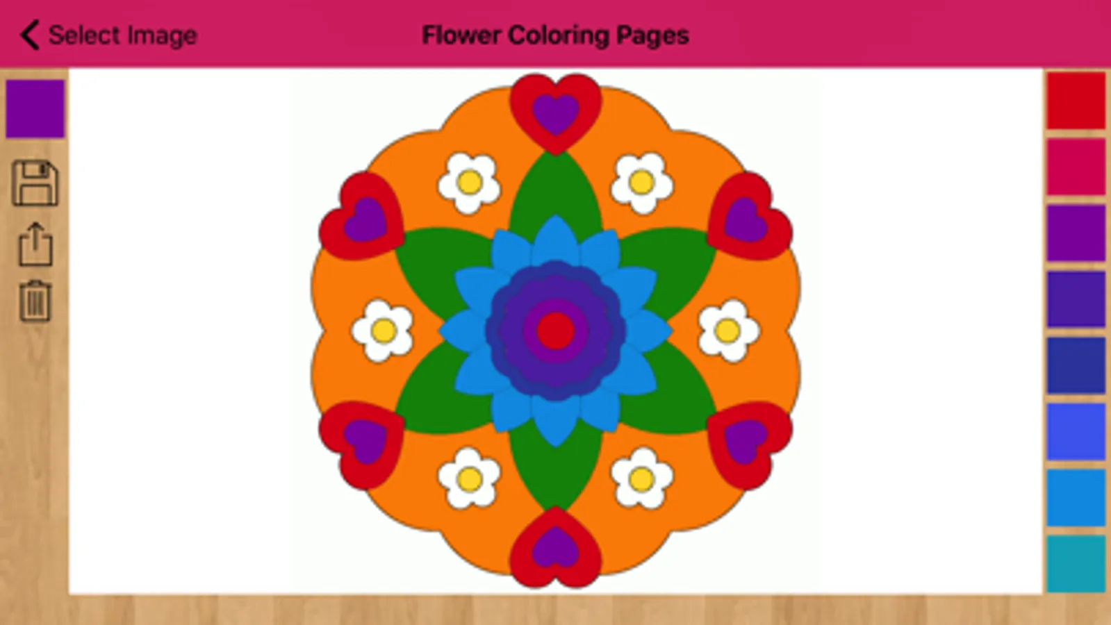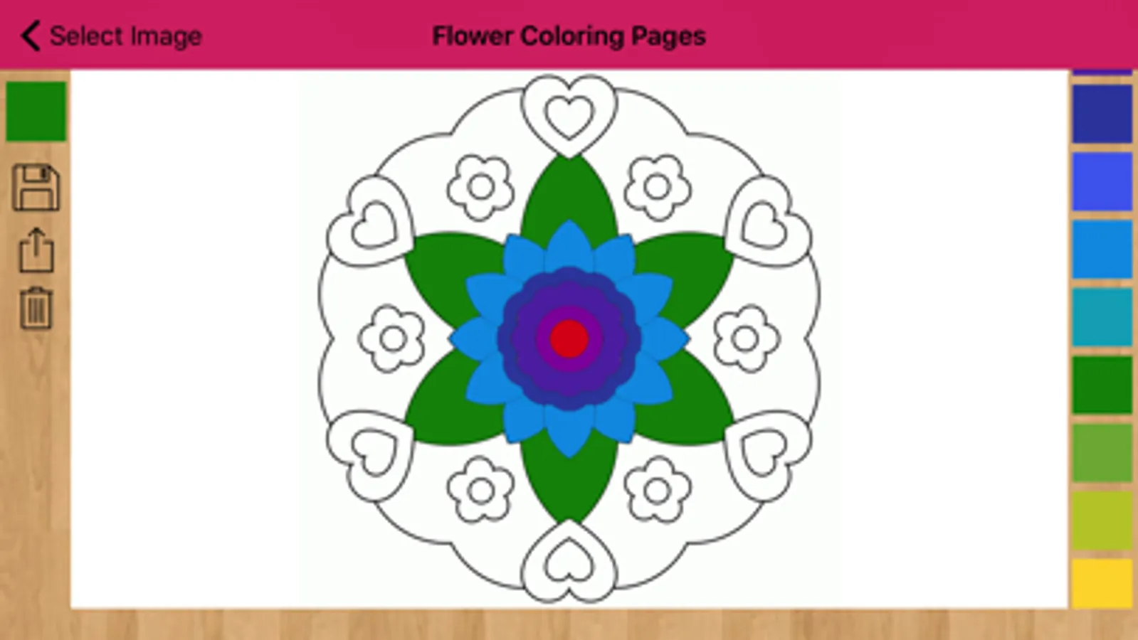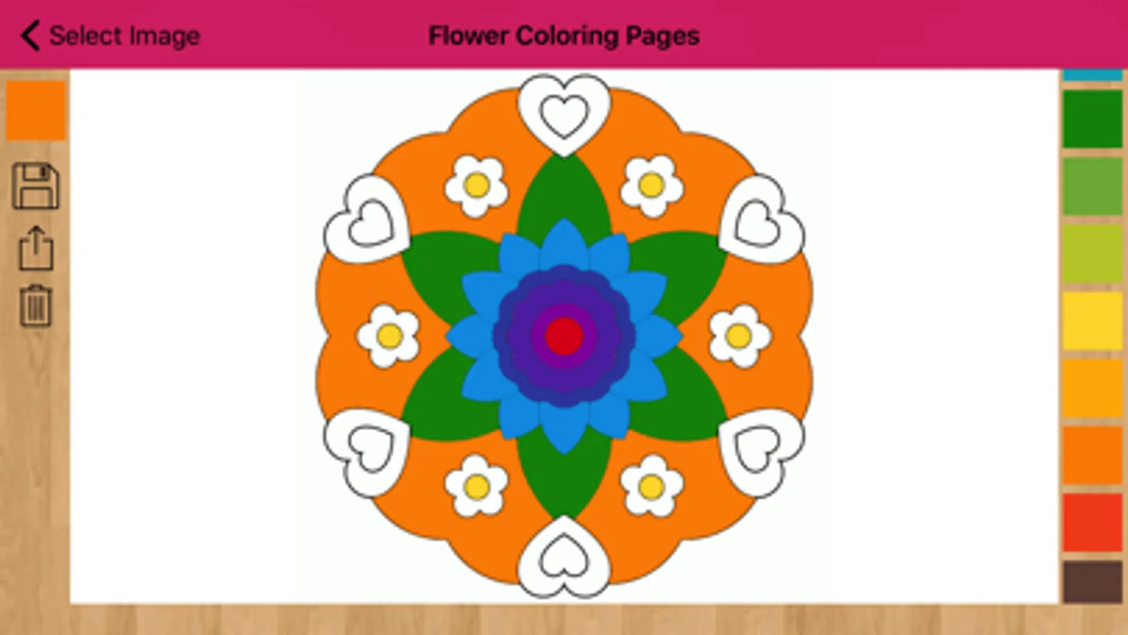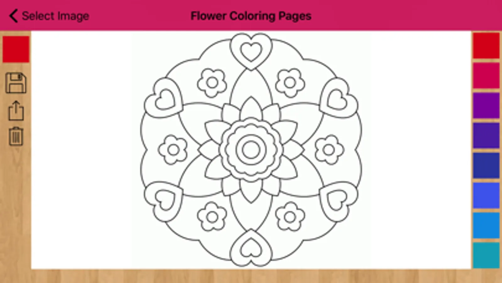 * Once you have finished coloring, you can share your mandala coloring book with the people you like. This app allows you to share those flower pictures via social media, messaging apps, SMS, email or via the way you choose.