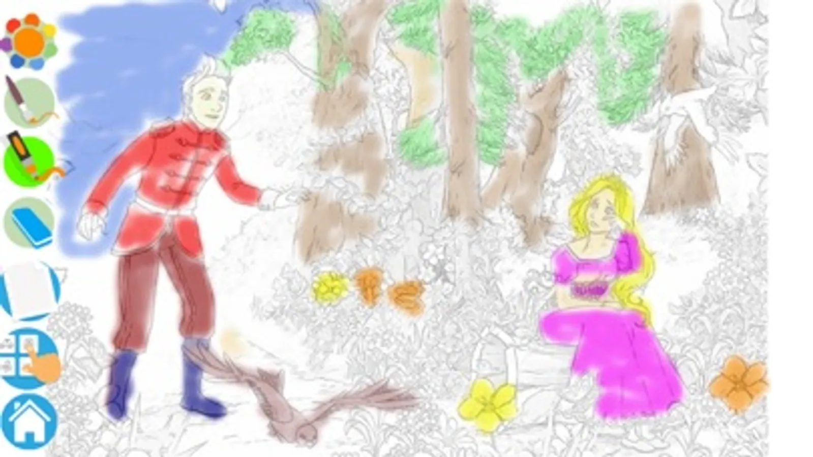 Children can choose between different brush strokes (pen, brush or paint bucket) and different thicknesses to blow their imagination and create magical drawings.