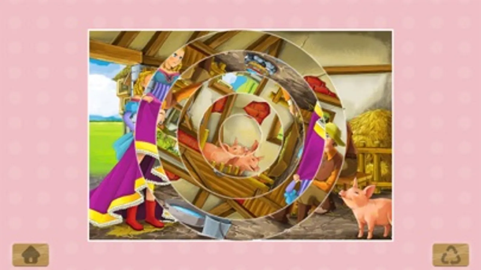 -Circular Puzzle: This type of puzzle is very original. Children should rotate each of the concentric circles clockwise or counterclockwise to complete it.