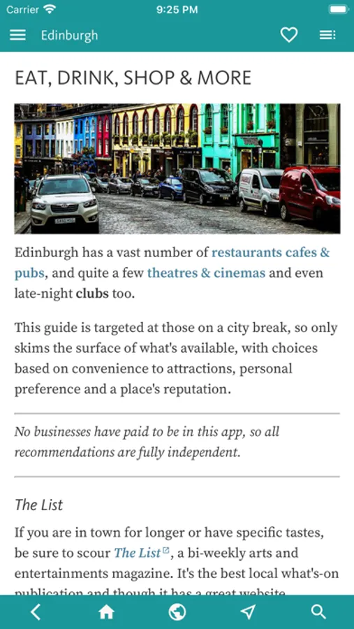 Finally the app details many good places to EAT, DRINK and SHOP, with a rundown of some key RESTAURANTS, PUBS and CAFES along with the low-down on city SHOPPING.