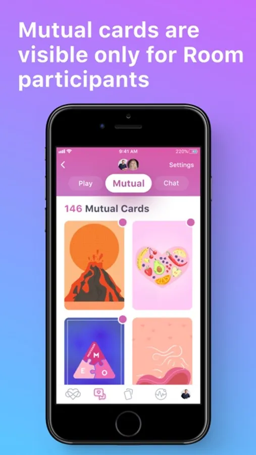 Invite a special person into the private Room, swipe through hundreds of cards to see what's mutual.