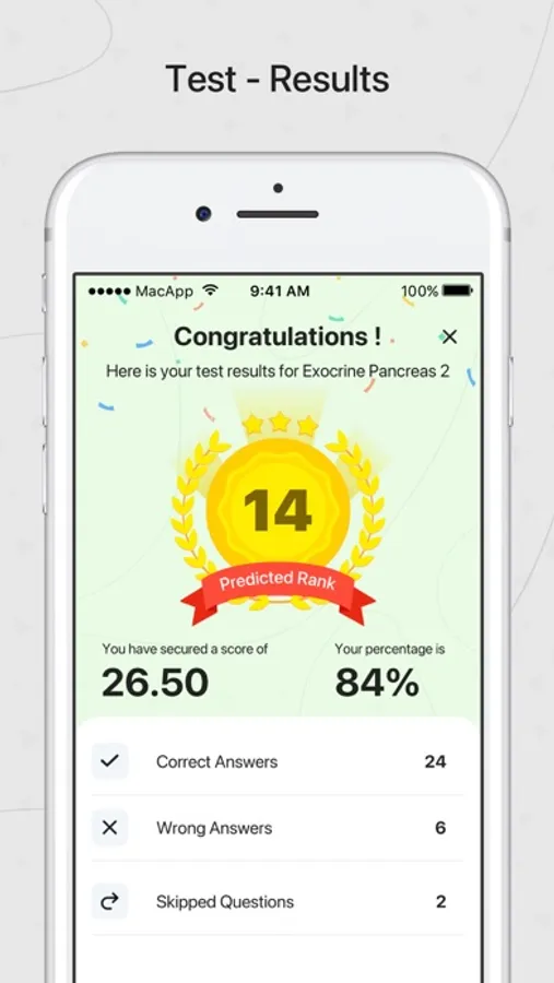 Exhaustive tests on each of the areas of the study with instant results and results comparison. All India ranking and personalized guidance to areas of improvements.